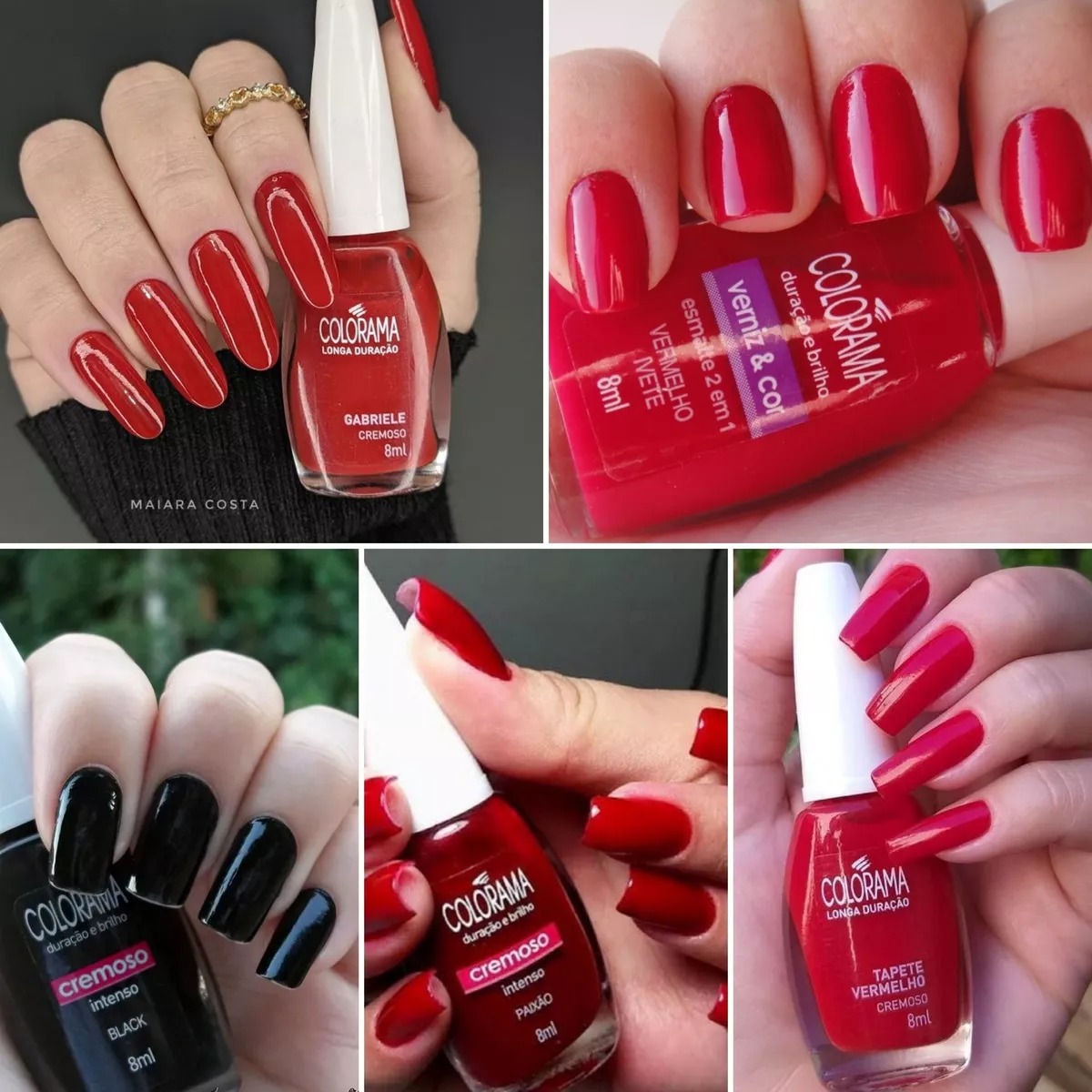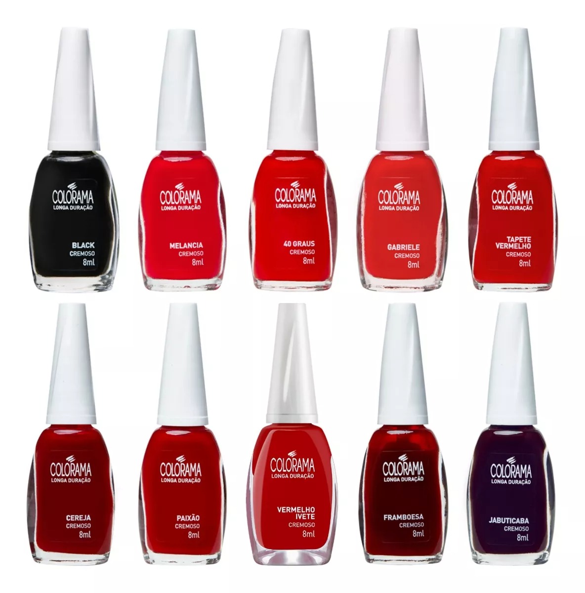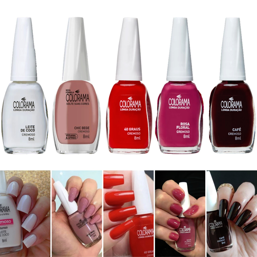 São 10 unidades e você escolhe as cores da linha tradicional da Colorama. Super pigmentados, de secagem rápida e com ultra brilho, além de longa duração nas unhas.