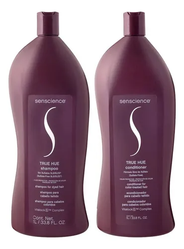 Senscience True Hue Kit Duo consists of Senscience True Hue Shampoo and Conditioner in a 1-liter dose.